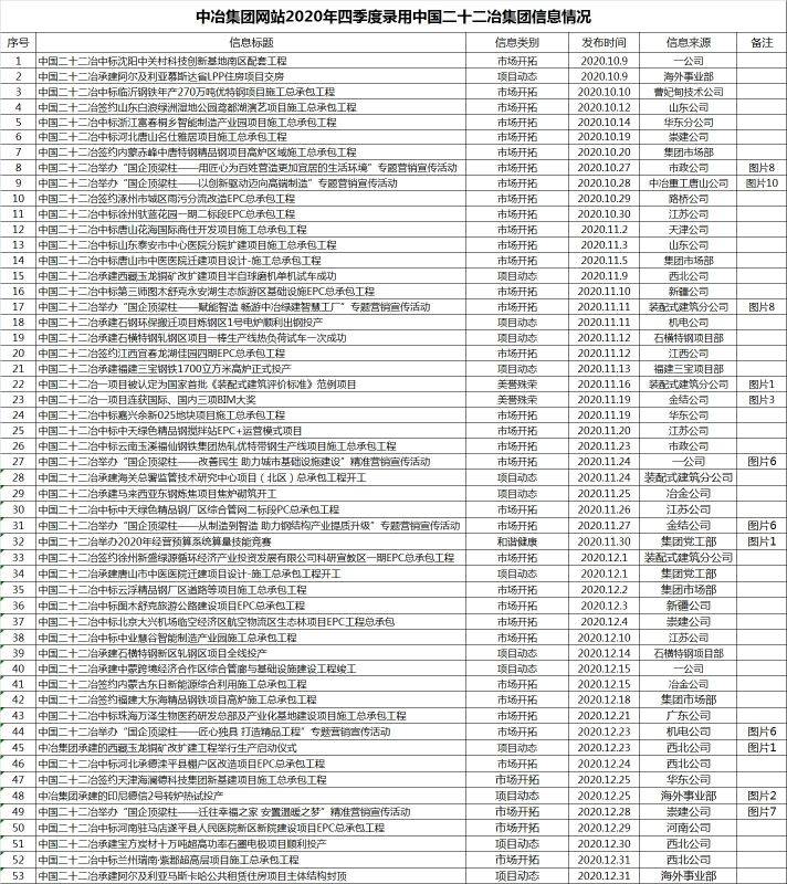 中冶集团网站2020年四季度录用ag九游会官网登录信息情况